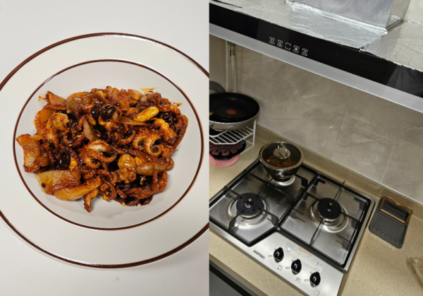 관리사님께서 해주신 쭈꾸미볶음, 문어숙회, 해물파전 등등