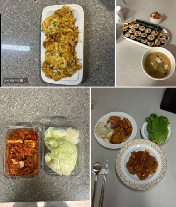 냉장고에 있는 재료들로 알아서 반찬이랑 메인요리 해주셨어요! 제가 밥 안 먹고 자는 일이 많았는데
